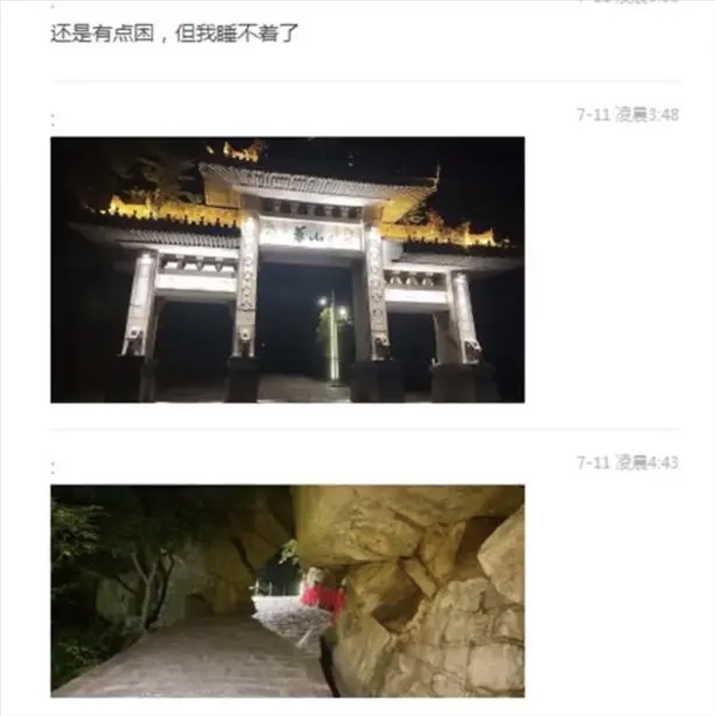 蘭某和女友的微信聊天記錄顯示:10日20:03,蘭某稱,找了個(gè)鐘點(diǎn)房,休息休息就去買票。11日3:48,蘭某開始分享華山的照片;7:17,蘭某表示到達(dá)北峰頂;9:49,蘭某稱很累,現(xiàn)在才到中峰;18:36,蘭某發(fā)了一張景區(qū)的照片,還說下雨了;19:06,女友發(fā)了個(gè)視頻,蘭某回復(fù)詢問表示,“哪里啊這是”,隨后再也沒有消息。