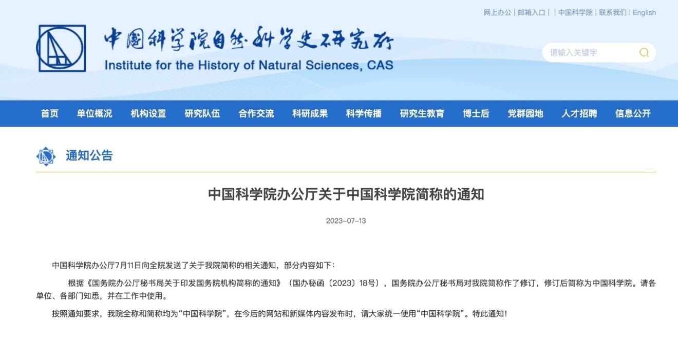 ·工作人員回應(yīng)中國科學(xué)院改簡(jiǎn)稱:保證統(tǒng)一性和規(guī)范性。