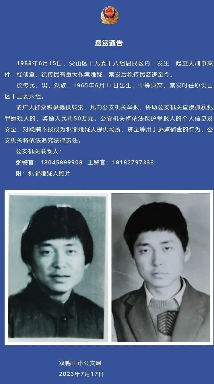 ·黑龍江警方懸賞50萬抓捕35年前刑案嫌疑人:涉嫌殺害前妻及其父母,案發(fā)現(xiàn)場(chǎng)僅一歲孩子活著。