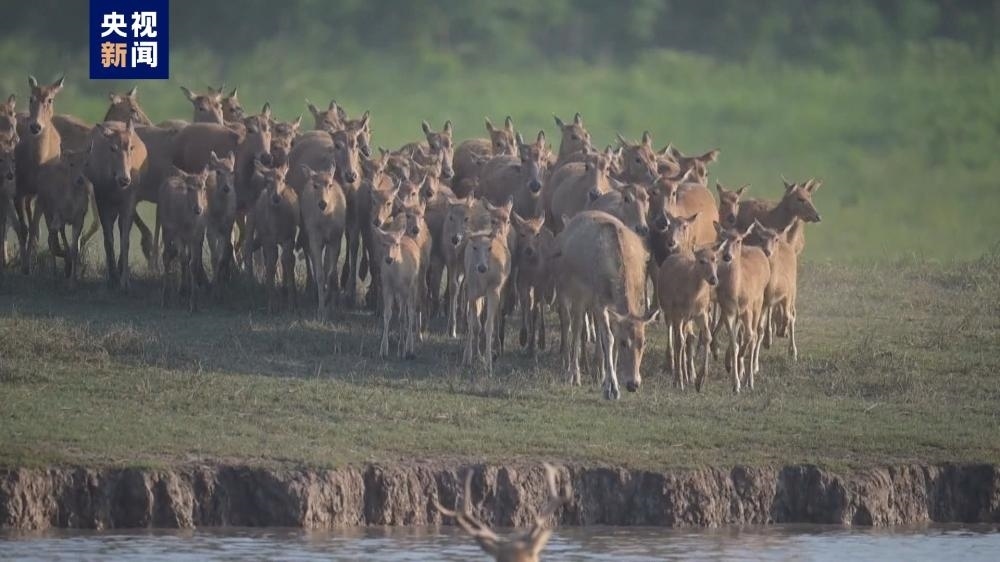 麋鹿寶寶扎堆,位于湖北荊州的石首麋鹿國家級(jí)自然保護(hù)區(qū)新生麋鹿達(dá)460頭。目前,保護(hù)區(qū)內(nèi)的麋鹿種群數(shù)量已經(jīng)達(dá)到近2000頭。