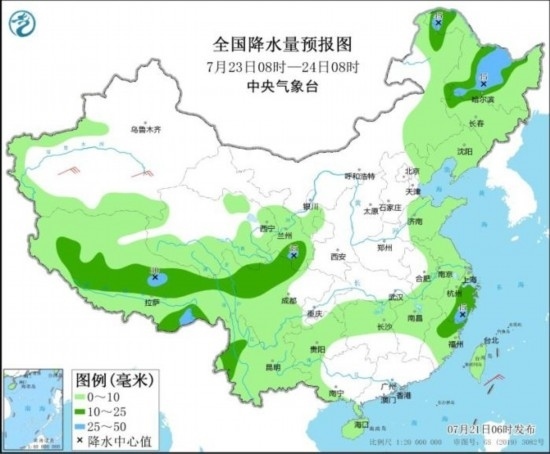 圖4 全國降水量預報圖(7月23日08時-24日08時)