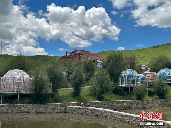 近年來,紅原縣牦牛現(xiàn)代農業(yè)園區(qū)堅持牧旅融合發(fā)展,如今,供游客休閑的咖啡屋、星空房等設施正在如火如荼地建設中。圖為園區(qū)打造的星空房。