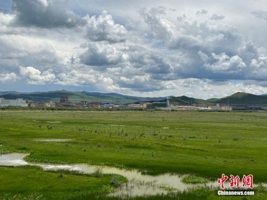 紅原也是全國三大濕地之一——若爾蓋濕地的重要組成部分。 圖為紅原牦?,F(xiàn)代農業(yè)園區(qū)前的濕地。