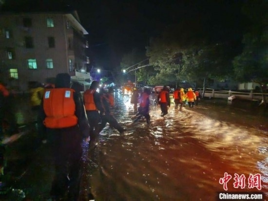 如在富陽區(qū)大源鎮(zhèn)青山村,暴雨引發(fā)的洪水流過村莊道路,水勢湍急,村內(nèi)也出現(xiàn)停電情況,一些村民只能待在家中二樓,當(dāng)?shù)卣e極開展救援、轉(zhuǎn)移工作。富陽常綠鎮(zhèn)也出現(xiàn)人員受困情況,當(dāng)?shù)氐谝粫r間轉(zhuǎn)移受困人員的同時,安排多臺挖掘機(jī)、鏟車不間斷運(yùn)轉(zhuǎn)全力開展排水溝渠疏通、砂石淤泥清除等作業(yè)。在當(dāng)?shù)佚堥T鎮(zhèn),5名游客因?yàn)橥蝗唤涤隉o法下山,后在消防隊(duì)的幫助下被安全送至山下。