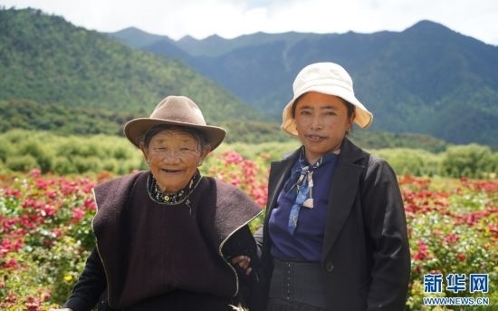 家在朵當(dāng)(卡達(dá))村的索朗卓瑪帶著自己81歲的母親前來賞花。她說,“村子里能開出這么漂亮的花,感到特別高興。帶媽媽來賞花,再拍拍照,很開心?!蹦概说男δ樤诨ǘ涞挠骋r下更加燦爛。