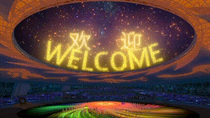 當(dāng)宣布本屆世界大學(xué)生運(yùn)動(dòng)會(huì)開幕時(shí),空中金色焰火熱烈綻放,隨后空中出現(xiàn)“歡迎”“WELCOME”字樣,隨著大運(yùn)會(huì)火炬塔被點(diǎn)燃,焰火在空中打出成都第31屆世界大學(xué)生夏季運(yùn)動(dòng)會(huì)U形會(huì)徽,體育場(chǎng)上空焰火呈現(xiàn)英文“Make Dreams Come True”,命運(yùn)與共,成就夢(mèng)想。