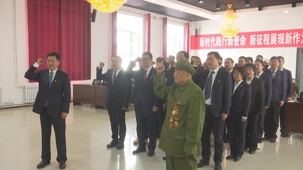 2023年4月6日,霍林河煤業(yè)集團有限責任公司(以下簡稱霍煤集團)大樓會議室,96歲老兵顧克明在鮮紅黨旗前再次舉起右拳,莊嚴宣誓加入中國共產(chǎn)黨。