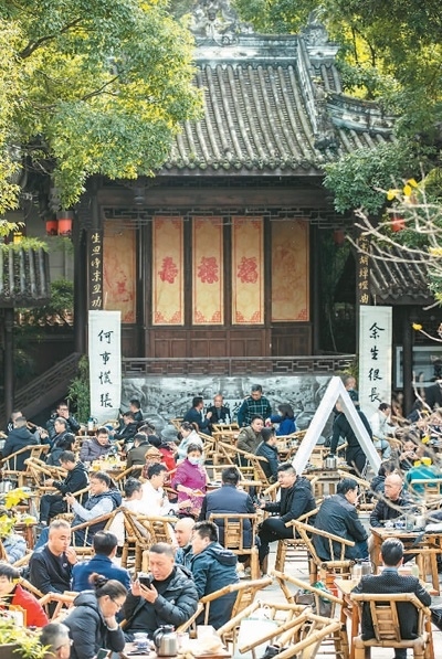 如今,有百年歷史的鶴鳴茶社已成為受年輕人青睞的網(wǎng)紅打卡地,它承載了成都人的集體記憶,也是成都市井休閑方式的典型代表。鶴鳴茶社還通過開展“景觀提升、治理提升、業(yè)態(tài)提升”三大提升項目,不斷滿足游客新需求。正值大運會召開之際,為了讓游客更好地感受成都休閑生活,鶴鳴茶社繼續(xù)開啟夜茶服務(wù),并上演以鶴鳴茶社百年變遷為主題的沉浸式劇目《鶴鳴傳奇》。
