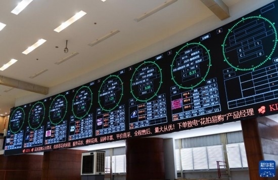這是昆明國際花卉拍賣交易中心拍賣大廳的大屏上實(shí)時(shí)顯示的鮮花信息(7月13日攝)。新華社記者 陳欣波 攝