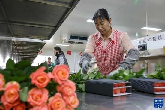 這是云天化晉寧花卉產(chǎn)業(yè)現(xiàn)代化示范園內(nèi)的鮮花包裝流水線(7月12日攝)。新華社記者 陳欣波 攝