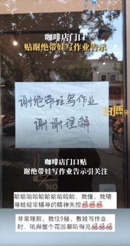 ·天津一咖啡店謝絕家長(zhǎng)帶娃寫作業(yè):寫作業(yè)易引起家長(zhǎng)和孩子情緒波動(dòng)。
