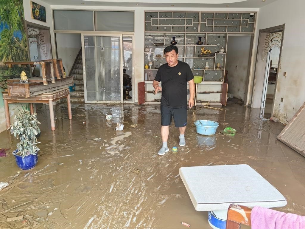 望海莊村艷天綜合商店門前,村民楊立新和趕來幫忙的親戚朋友正在一起整理受損貨品,這個(gè)村里最大的超市此次受災(zāi)較重。“損失不少,但我們不能光等著,先把能搶救的搶救出來,能收拾的都收拾干凈,盡己所能先恢復(fù)?!睏盍⑿抡f。