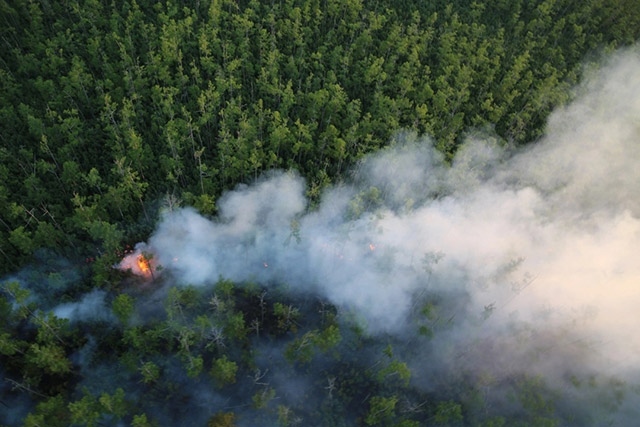 進入夏季,內(nèi)蒙古大興安嶺林區(qū)北部持續(xù)干旱少雨,干雷暴活動異常頻繁。受異常氣候等影響,8月6日以來,內(nèi)蒙古大興安嶺林區(qū)北部相繼發(fā)生多起雷電森林火災(zāi),呈多點集中爆發(fā)態(tài)勢。由于發(fā)生雷電森林火災(zāi)的地點海拔高度多在1100米至1400米之間,林間偃松密布,灌木叢生,站桿倒木多,樹木油脂含量高,地下腐殖層厚度達50多厘米,撲火隊伍行進艱難,撲救、清理難度極大。