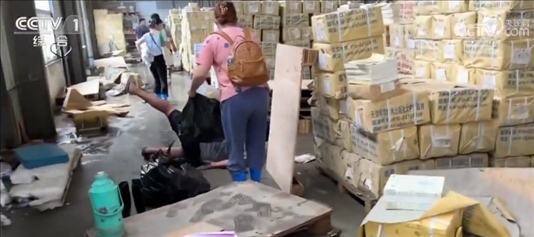 書商 鄒斌:對,要銷毀的。里面有一些滋生的細菌,也不能再讀了。你們走慢點,這個(地面)很滑。
