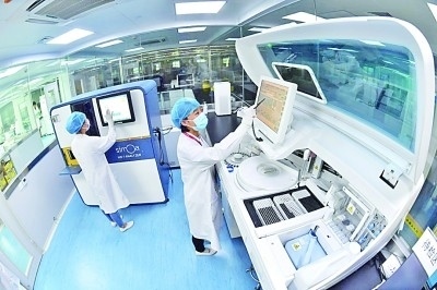 實驗人員正在進行檢測工作。資料圖片
