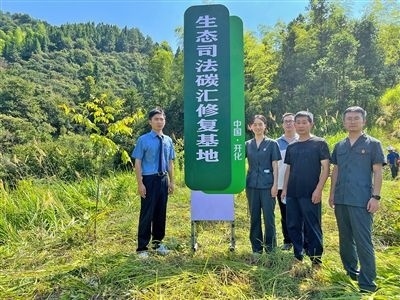 截至目前,衢州兩級法院共設(shè)立生態(tài)司法碳匯修復(fù)基地3處,開展補(bǔ)植復(fù)綠8次,種植苗木31300余株。