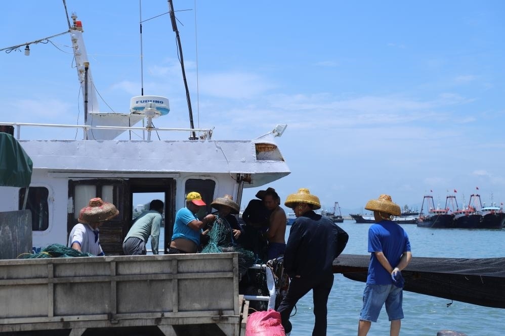 8月16日上午,溫潤的海風(fēng)輕拂海面,一排排漁船??吭陂l坡港海灣,汽笛聲陣陣起伏。休息了三個(gè)半月的漁民鄭建華坐在船頭,正翹首以盼正午時(shí)分開漁號角的吹響。
