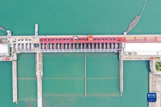 9月2日拍攝的廣西大藤峽水利樞紐泄水閘(無(wú)人機(jī)照片)。新華社記者 曹祎銘 攝
