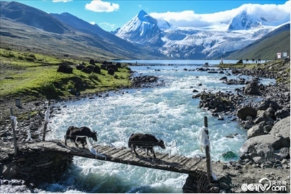在西藏那曲市比如縣境內(nèi)的薩普雪山,藍(lán)天、雪山、湖泊構(gòu)成一幅美麗的生態(tài)畫卷。