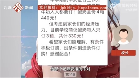 ·河南一校長回應(yīng)老師疑強(qiáng)制學(xué)生訂酸奶:自愿原則,老師措辭不準(zhǔn)。