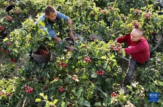 金秋時節(jié),河北省晉州市的1.2萬畝山楂進入成熟期,當?shù)毓r(nóng)搶抓農(nóng)時適時采收,供應(yīng)市場。近年來,晉州市引導(dǎo)農(nóng)民因地制宜發(fā)展山楂產(chǎn)業(yè),并推動標準化管理、規(guī)?;N植,山楂產(chǎn)業(yè)已成為帶動當?shù)厝罕娫鍪盏奶厣a(chǎn)業(yè)。