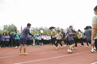 田徑比賽與呼啦圈傳遞比賽之后,便是速度與協(xié)調(diào)并重的集體跳繩比賽。大家的注意力集中在場(chǎng)上,為選手們鼓勁加油,選手們則全神貫注,誓要拿出最好成績(jī)。