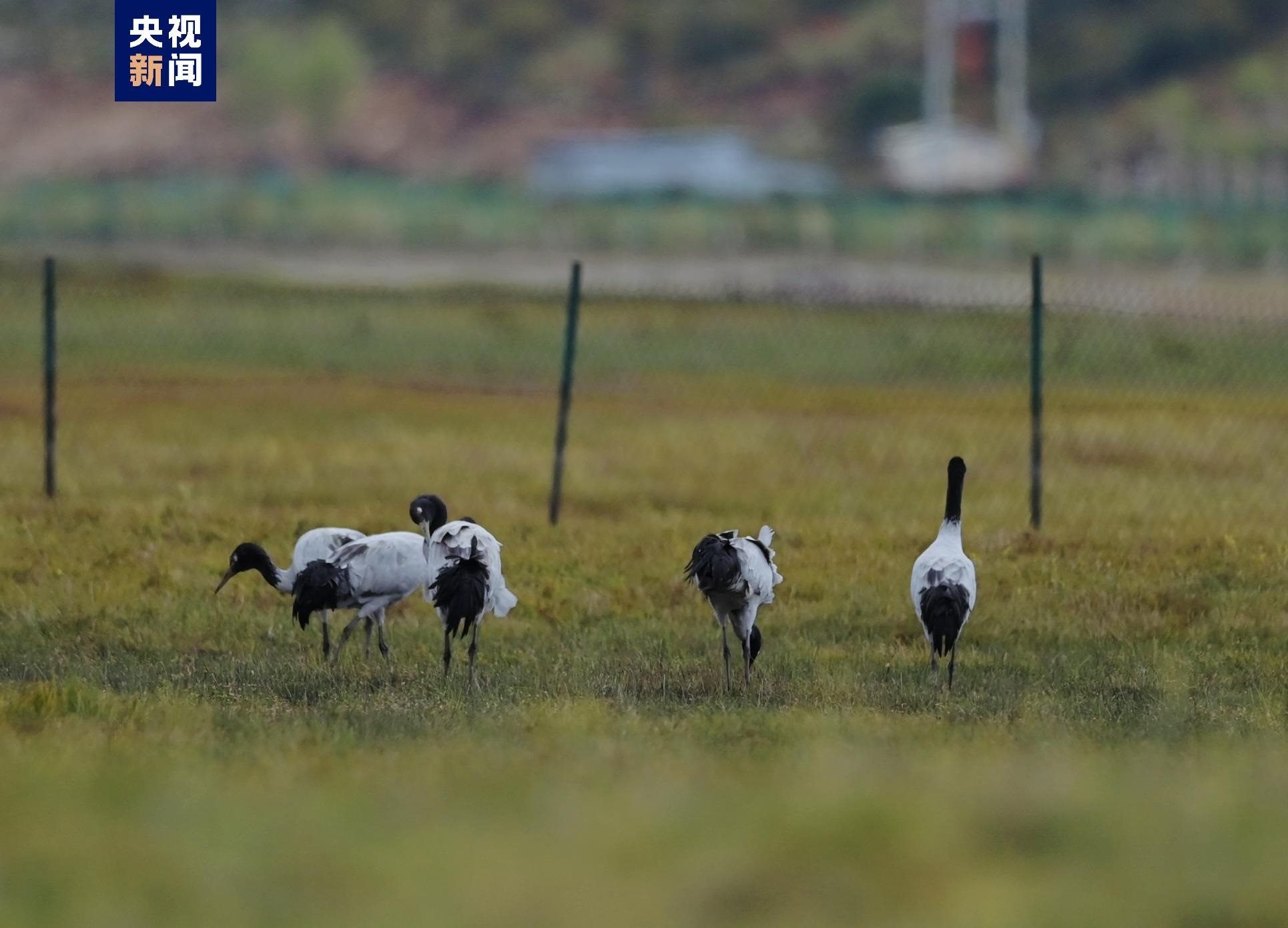 近日,云南迪慶納帕海省級自然保護區(qū)管護局工作人員在巡護時,監(jiān)測到5只黑頸鶴。經(jīng)確認,這是今年納帕海國際重要濕地迎來的第一批越冬黑頸鶴。