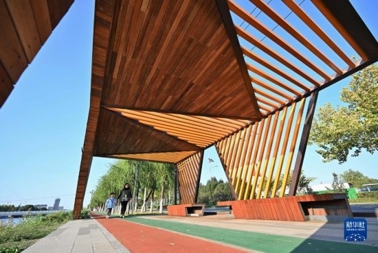 10月15日,市民從唐山市海港經(jīng)濟(jì)開(kāi)發(fā)區(qū)城市休閑驛站走過(guò)。
