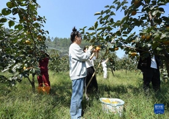 10月18日,在浬浦鎮(zhèn)盤山村,游客采摘從國外引進(jìn)的甜柿。