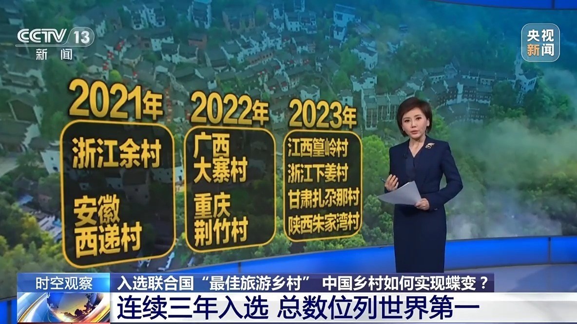中國是從2021年就開始參與這個評選了,所以前兩屆也都有入選鄉(xiāng)村,2021年入選的是浙江余村、安徽西遞村;2022年入選的是廣西大寨村、重慶荊竹村,加上今年入選的四個村子,我國入選的總數(shù)已經(jīng)達(dá)到8個,目前是全世界擁有“最佳旅游鄉(xiāng)村”最多的國家。