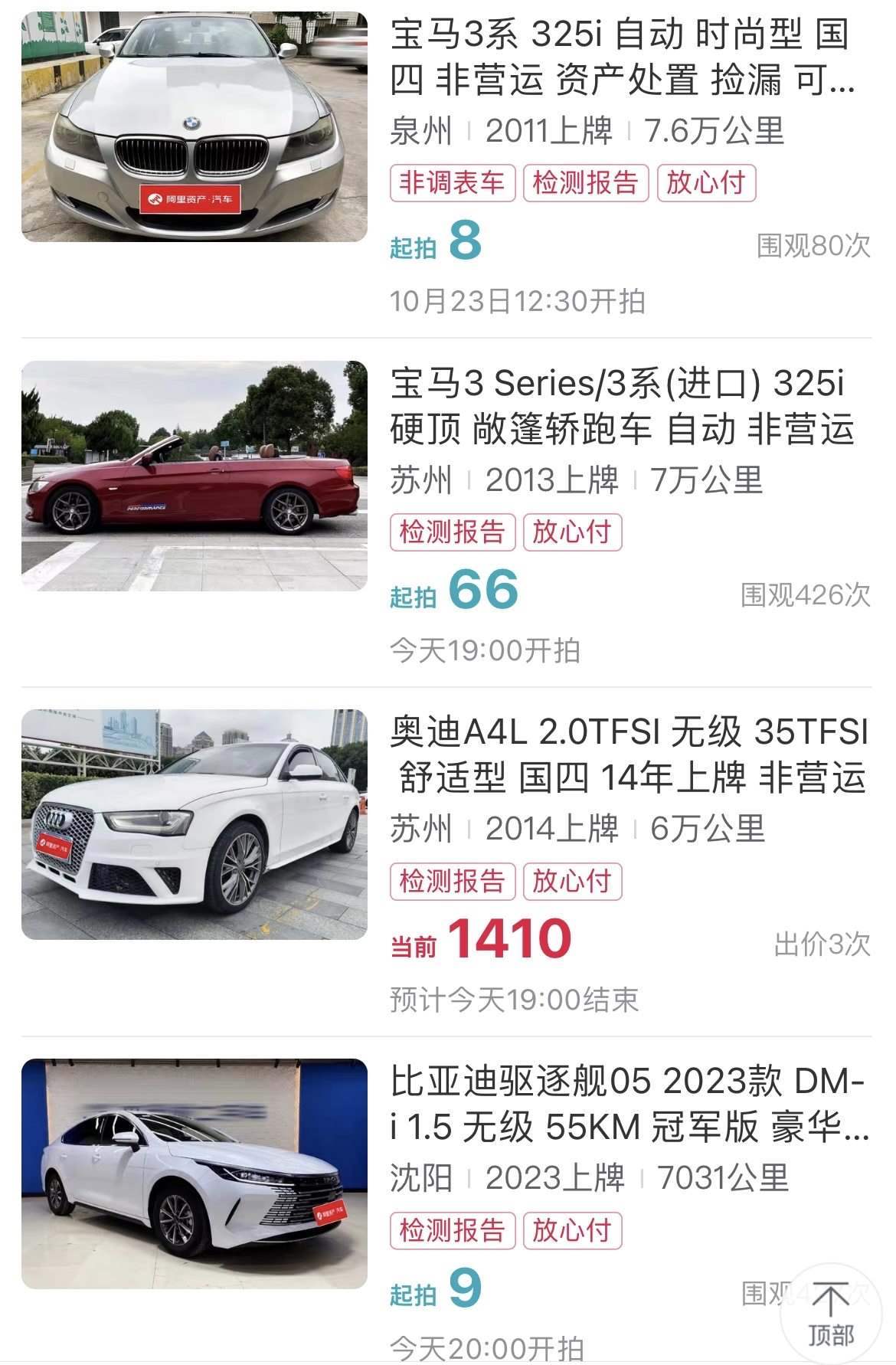 “我們遇到過幾千塊拍下寶馬車的,但還沒遇到過1塊錢拍到手的。”這名寶馬x5(進(jìn)口)車拍賣公司的工作人員表示,雖然起拍價(jià)只有1元,但通常在競(jìng)價(jià)快結(jié)束時(shí),就會(huì)有大量競(jìng)拍者加價(jià)拍下。以1元起拍價(jià)買下車輛的情況并不多見。