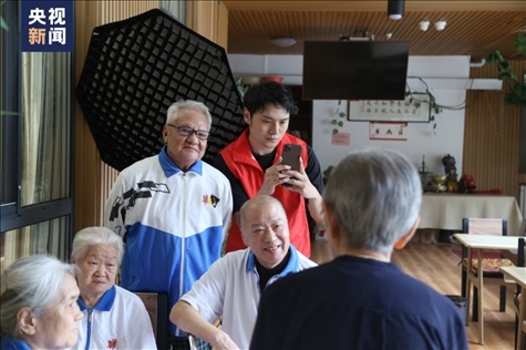 每天午餐后,他會(huì)在這里擺好桌子和道具,招呼爺爺奶奶們拍視頻。