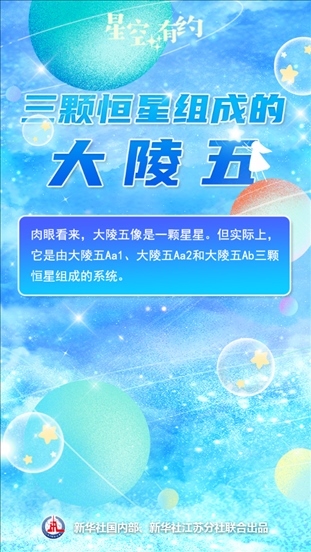 中國(guó)科學(xué)院紫金山天文臺(tái)科普主管王科超說,在人們?nèi)庋劭磥?,大陵五只是秋季東北方向天空中一個(gè)遙遠(yuǎn)的亮點(diǎn),像是一顆星星。但實(shí)際上,它是由大陵五Aa1、大陵五Aa2和大陵五Ab三顆恒星組成的系統(tǒng)。這三顆恒星被引力“束縛”在一起,共同組成大陵五這個(gè)三合星系統(tǒng)。系統(tǒng)之中三顆星的相對(duì)位置還會(huì)發(fā)生變化,并影響到大陵五的亮度。天文學(xué)上把這種亮度時(shí)常變化的恒星或恒星系統(tǒng)稱作變星。大陵五也是秋季星空著名星座英仙座中的第二亮星。
