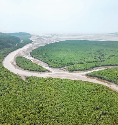 廣西山口紅樹林生態(tài)國(guó)家級(jí)自然保護(hù)區(qū)地處廣西合浦縣東南部沙田半島的東西兩側(cè),由該島東側(cè)和西側(cè)的海域、陸域及全部灘涂組成,面積8000公頃。圖為保護(hù)區(qū)一角。徐 譚攝