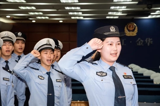 11月6日,浙江金華,警號(hào)057701重啟儀式在金華市公安局舉行,00后新警傅蕓繼承了父親傅煜華的警號(hào)。2013年,年僅39歲的傅煜華倒在工作崗位,被追授“全國(guó)公安系統(tǒng)二級(jí)英?!薄8凳|說,她將替爸爸續(xù)寫完他的從警路。
