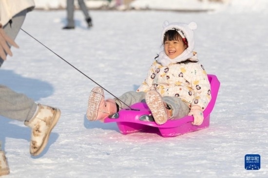 11月9日,小朋友在哈爾濱建筑藝術(shù)廣場(chǎng)上游玩。