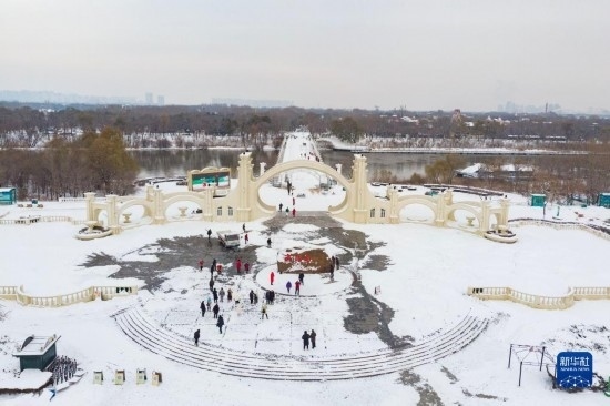 這是11月9日拍攝的位于哈爾濱冰雪大世界園區(qū)內(nèi)的雪花摩天輪(無人機(jī)照片)。