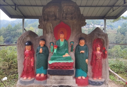 此外在四川廣安、資陽(yáng)、內(nèi)江等地也存在類似情況。位于廣安市經(jīng)開(kāi)區(qū)的金鳳山摩崖造像,開(kāi)鑿于宋代,1994年當(dāng)?shù)厝罕娮阅假Y金對(duì)造像的殘缺部位進(jìn)行了修補(bǔ),并涂上紅、藍(lán)、青三色油漆。位于內(nèi)江市資中縣的羅漢洞,建于宋代,1998年,當(dāng)?shù)厝罕娮曰I資金對(duì)羅漢洞內(nèi)“拈花微笑佛”進(jìn)行裝彩重繪,目前,其余造像無(wú)妝彩重塑現(xiàn)象。此外,核查中還發(fā)現(xiàn)四川資陽(yáng)市雁江區(qū)的半月山摩崖造像,佛足部分有人為刻畫痕跡。