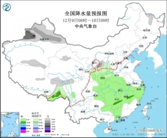 全國降水量預(yù)報(bào)圖(12月9日08時(shí)-10日08時(shí))