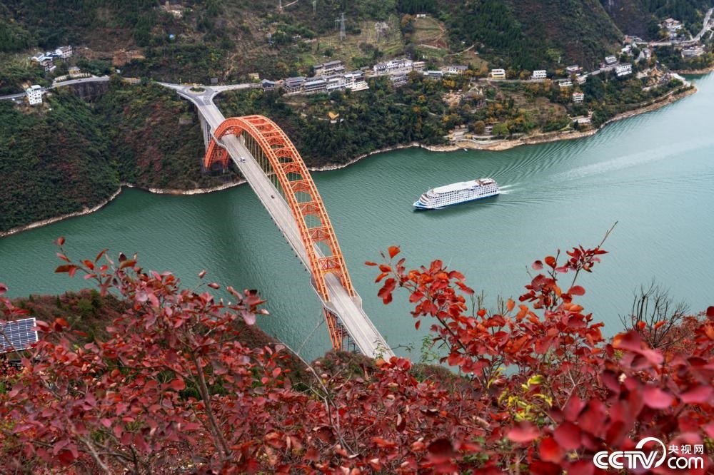 初冬時(shí)節(jié),長(zhǎng)江三峽重慶市巫山縣水域兩岸色彩斑斕,紅葉正艷,美如畫(huà)卷。