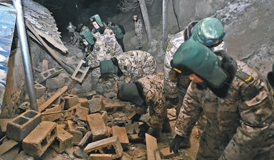 12月19日,武警甘肅總隊(duì)臨夏支隊(duì)在積石山縣劉集鄉(xiāng)陽屲村展開救援。侯崇慧攝(新華社發(fā))