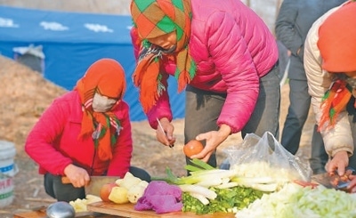 12月19日16時20分許,在青海省海東市民和回族土族自治縣金田村安置點(diǎn),受災(zāi)群眾正在帳篷旁準(zhǔn)備晚飯。本報記者 賀 勇攝