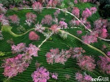 2023年12月18日,云南大理,無(wú)量山櫻花谷的冬櫻花迎來(lái)最佳觀賞期。如云似霞的櫻花與碧綠如染的茶園交織在一起,構(gòu)成了一道亮麗的風(fēng)景。