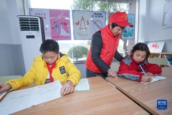 12月20日,秀山小學(xué)學(xué)生在“民生小鋪”志愿者的陪護(hù)下做作業(yè)。