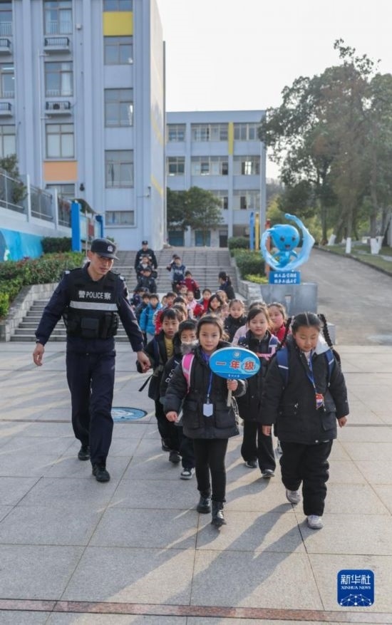 12月20日,秀山派出所民警在秀山小學(xué)放學(xué)時間參與“護(hù)學(xué)崗”維持秩序,同時接獨(dú)自放學(xué)的學(xué)生去“民生小鋪”。