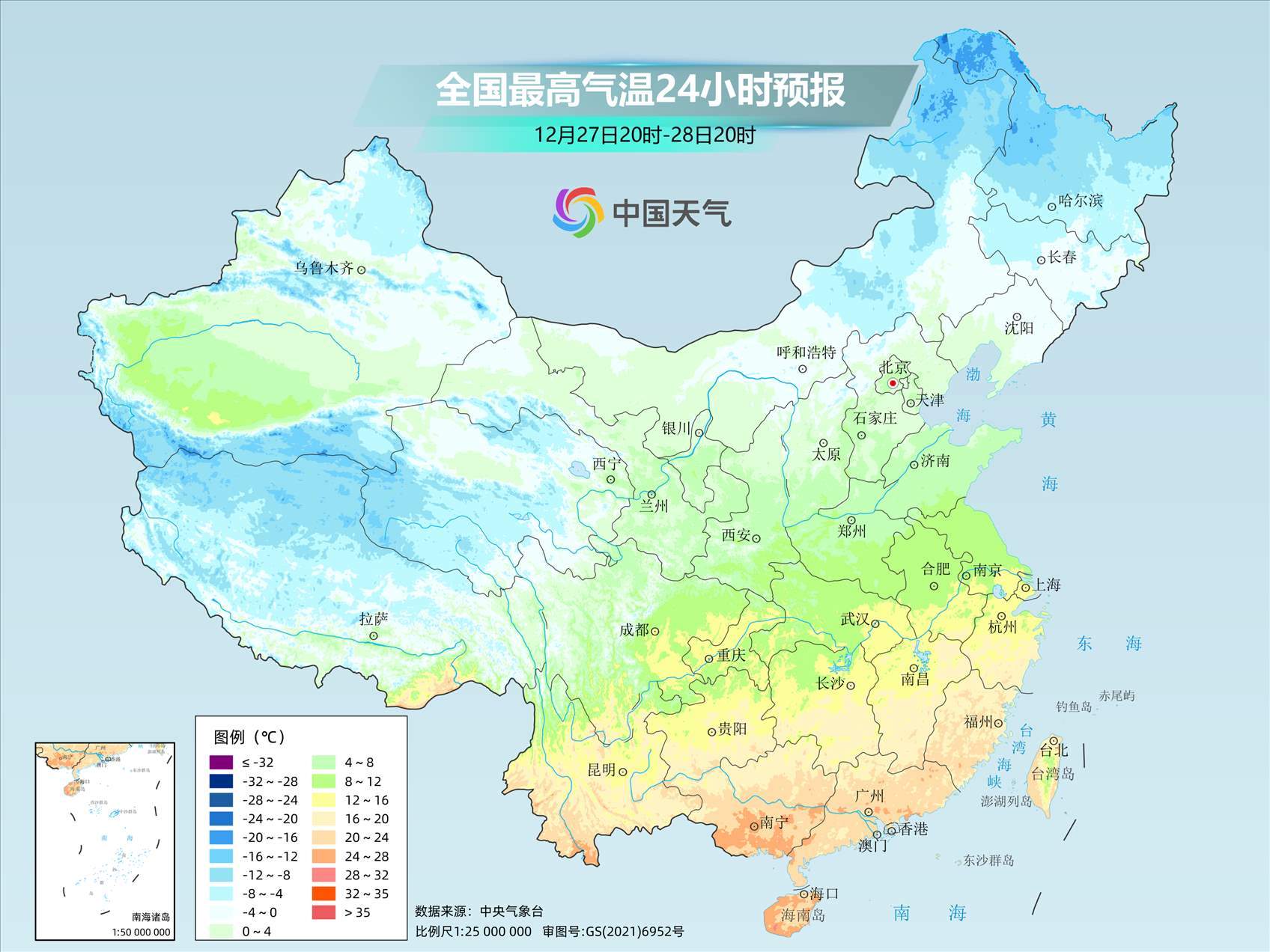伴隨著回暖,27日上午冰凍線已退居長江流域,回歸到常年同期正常位置。