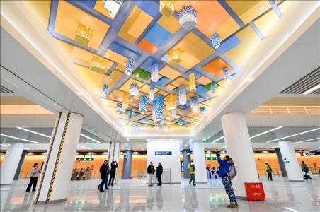 迎新年開(kāi)新線,近年來(lái)已成為北京的一項(xiàng)“傳統(tǒng)節(jié)目”。今天,許多北京市民嘗鮮體驗(yàn)新開(kāi)通的3段地鐵。西壩河站“觀魚(yú)”,太陽(yáng)宮站曬“暖陽(yáng)”,天通苑東站體驗(yàn)“萬(wàn)家燈火”,宛平城站賞“盧溝曉月”,模式口站憶“駝鈴古道”……新地鐵站不僅有明艷的“多巴胺”配色,顏值高,還講述著古都發(fā)展變遷的故事。