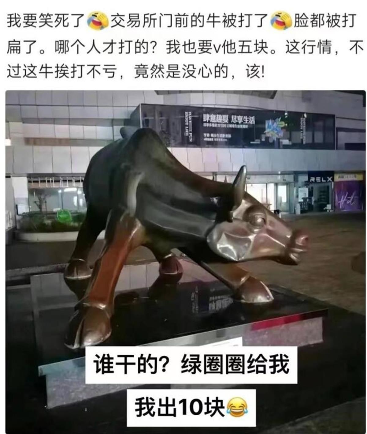 近日,有網(wǎng)友發(fā)帖稱,深交所門前的標(biāo)志性建筑“牛雕塑”被人砸了。1月10日,深交所工作人員告訴極目新聞?dòng)浾?,“牛雕塑”并未被砸,?yīng)該是謠言。
