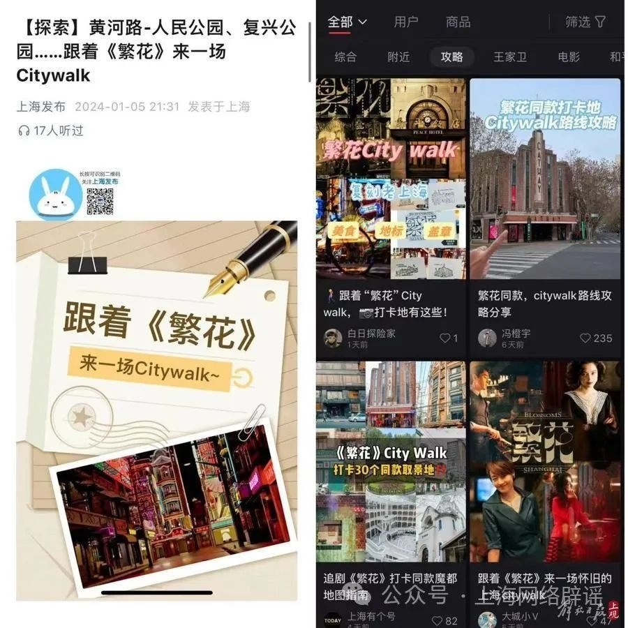 央視網(wǎng)消息:據(jù)上海網(wǎng)絡(luò)辟謠微信公眾號消息,電視劇《繁花》近日熱播,帶火了和平飯店、黃河路、進(jìn)賢路等劇中出現(xiàn)的地標(biāo)、路段,市民游客爭相打卡。誰知,這一熱度也被造謠生事者嗅出了“商機”——連續(xù)數(shù)日,“繁花Citywalk(城市散步)收費3公里520元”的話題登上某社交平臺熱榜。兜馬路竟然也要收費,而且代價不菲?上海辟謠平臺調(diào)查發(fā)現(xiàn),并沒有。