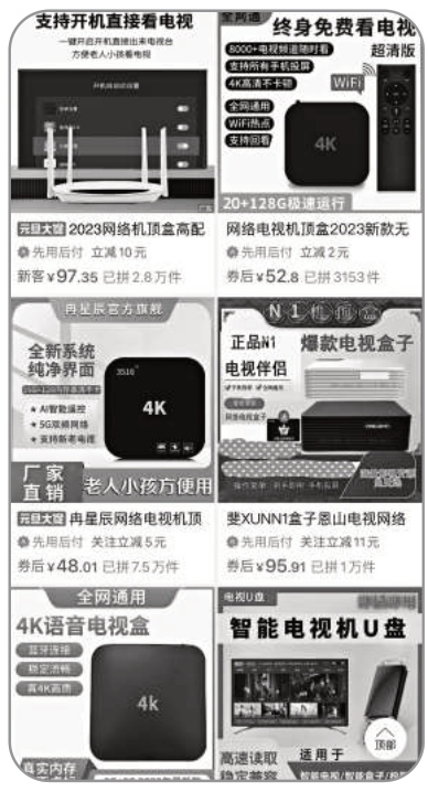 購(gòu)物平臺(tái)上出售的網(wǎng)絡(luò)電視機(jī)頂盒種類(lèi)很多。